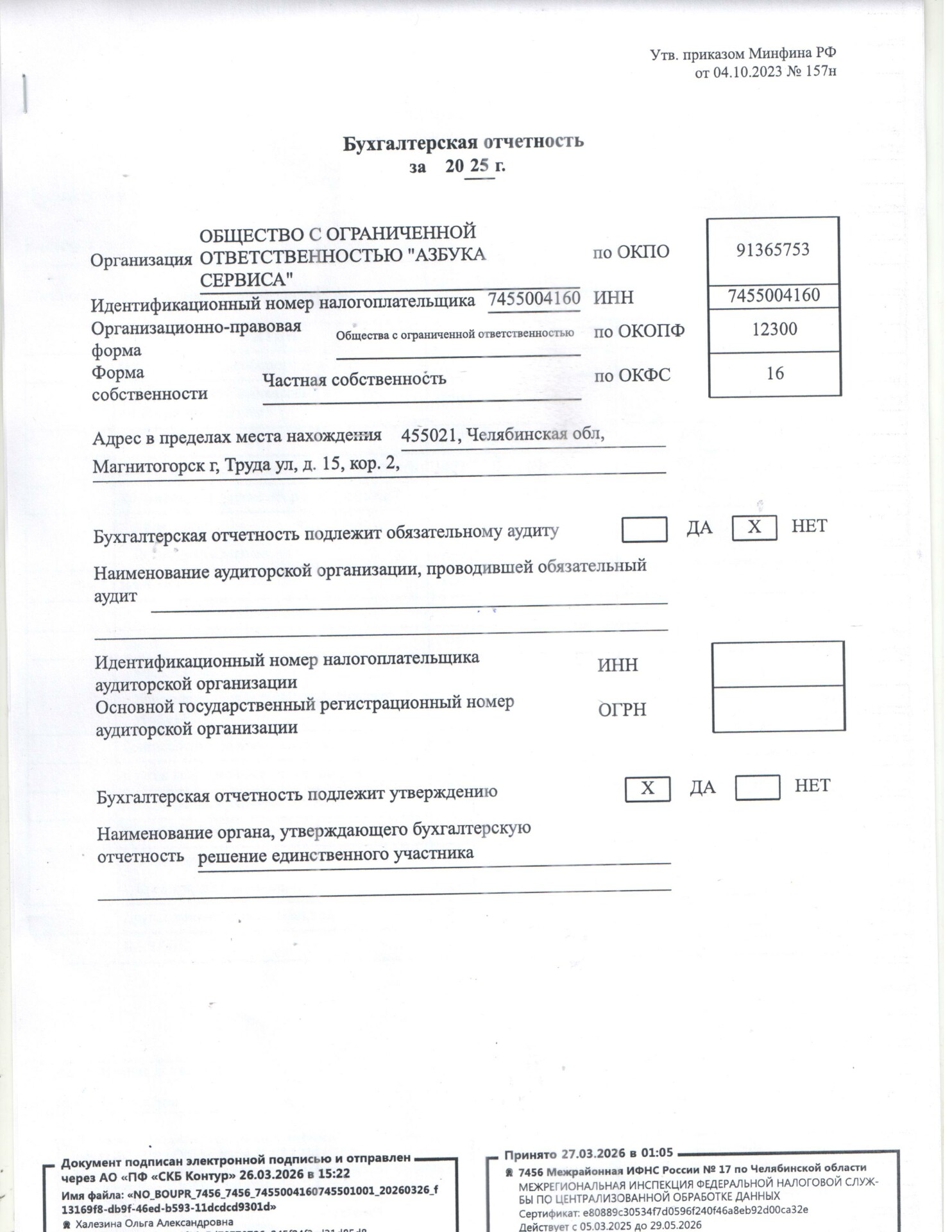 - Упрощенная бухгалтерская отчетность за 2025г. 02.04.2026